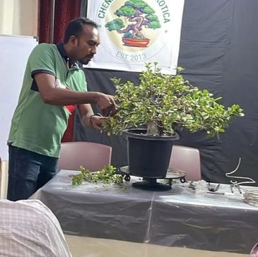 Through workshops, demonstrations, and his personal practice, he has played a pivotal role in raising awareness about bonsai in Chennai, inspiring both beginners and seasoned practitioners. His deep understanding of bonsai principles, including the art of shaping, pruning, and styling trees, has made him a key figure in educating others about the importance of patience, precision, and a mindful approach to nature that bonsai embodies.